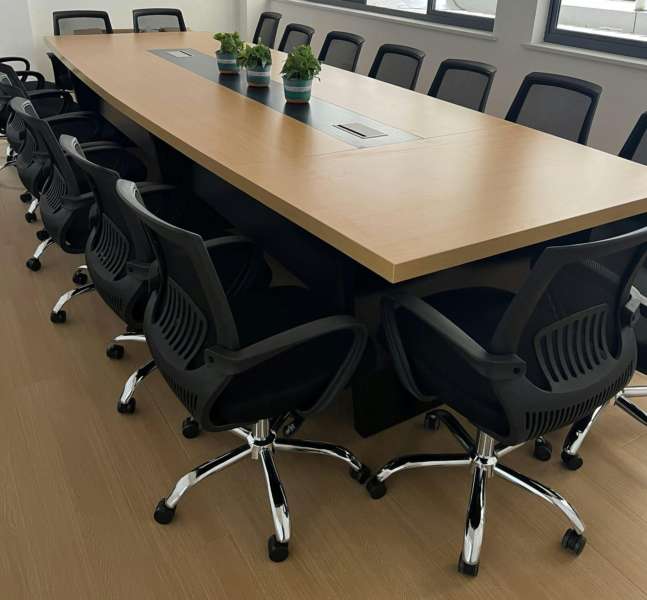 現代的で洗練されたデザインが特徴である会議用テーブル。